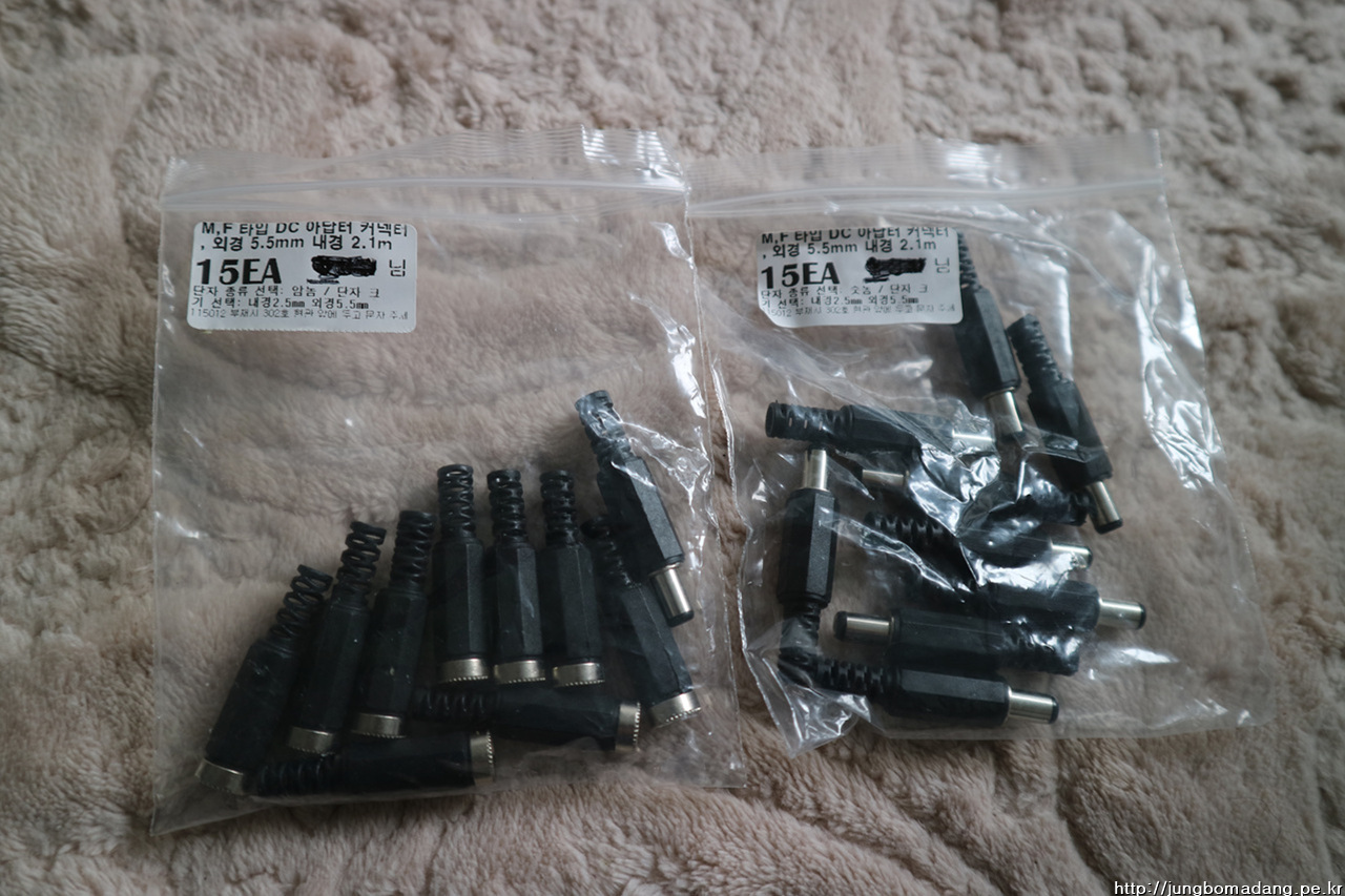 핵심적인 역할을 해준 M/F 타입 DC 어댑터 커넥터 입니다. 예전에 15개 세트로 구매해둔 게 요긴하게 쓰이네요. ㅋㅋㅋ