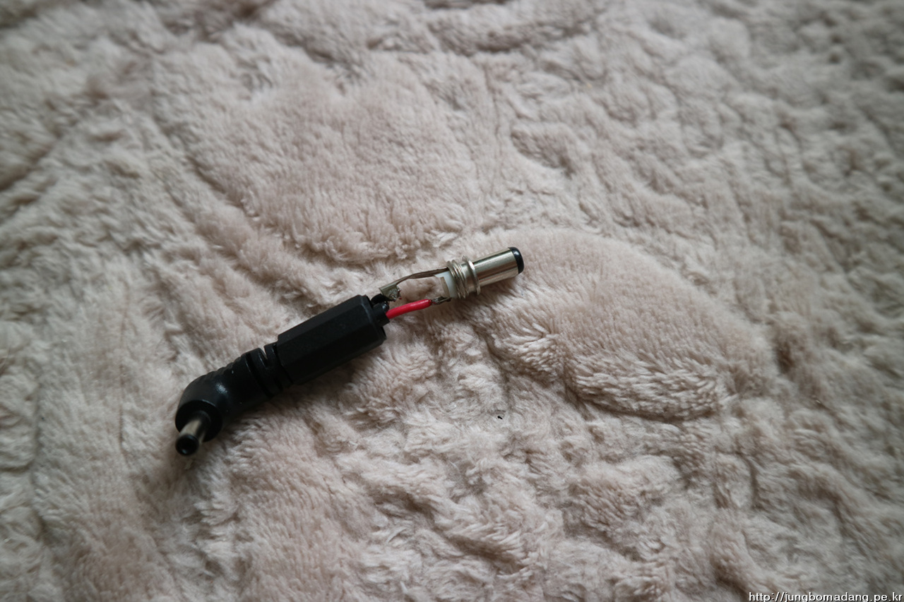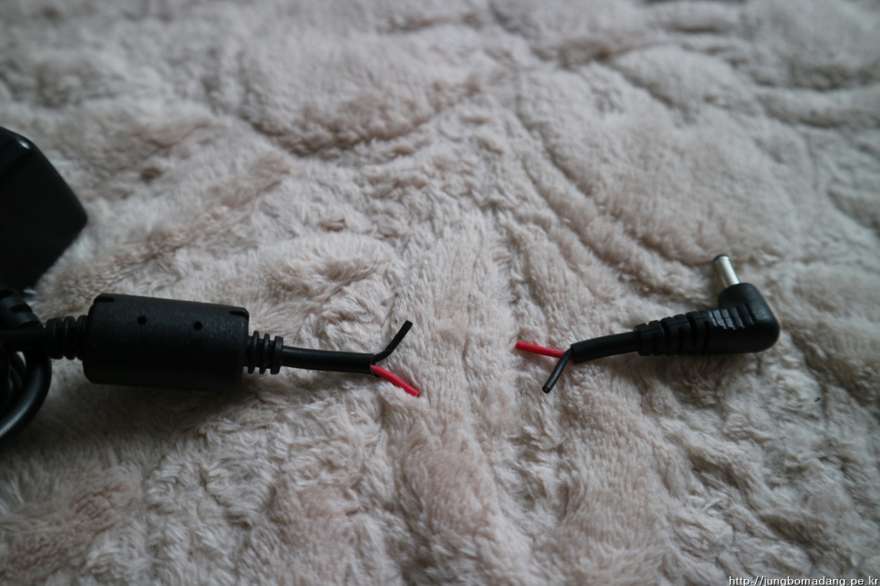 대략적인 작전은 요래 기존 노트북 정품 충전케이블의 끝쪽 선을 절단해서 그 부분을 암/수 DC 아답터 커넥터로 연결하게끔 하는 겁니다.