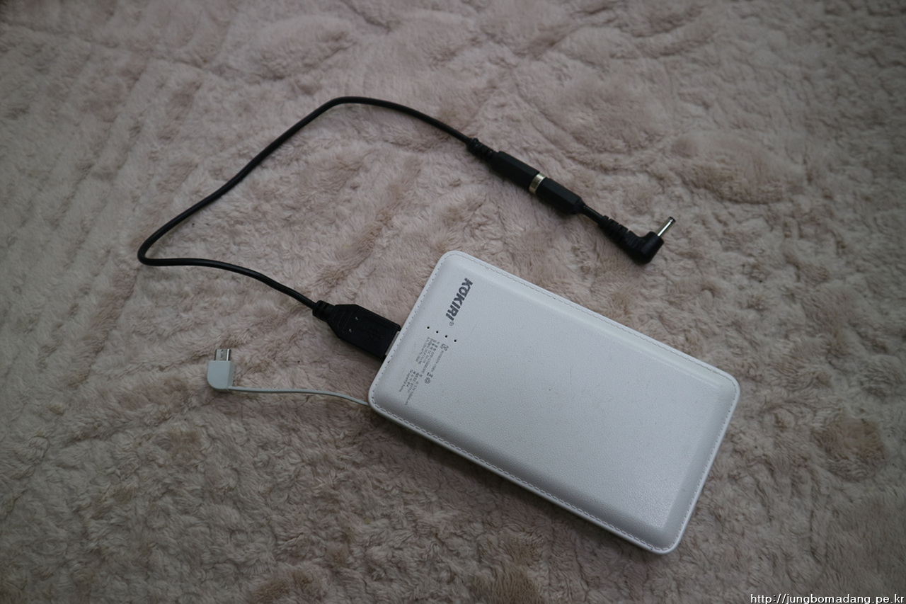 노트북 내장 배터리 용량이 6000mAh 이구, 외부로 연결된 배터리 용량이 10000mAh 니까, 사용시간이 3시간 + 5시간 = 8시간 사용 가능하네요. 하지만! 휴대용 배터리 개수를만 더 늘리면 노트북을 더 많은 시간 부려먹을 수 있겠죠? ㅋㅋㅋ