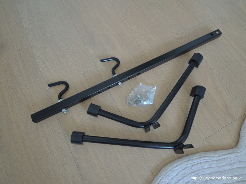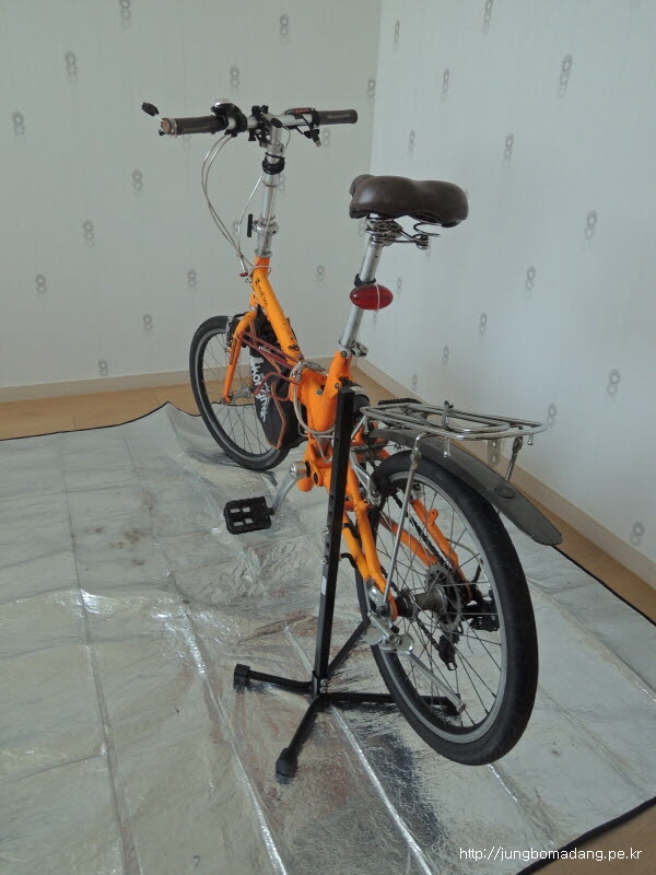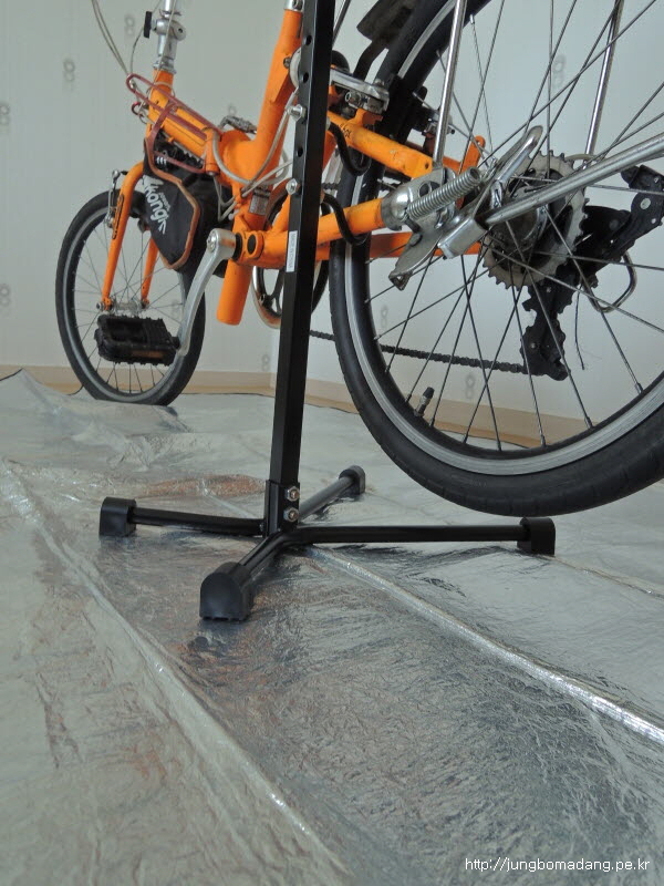 이렇게 되면 안되구요. 거치하는 부분이 바닥 긴쪽으로 오게 되어야 합니다. 아래처럼 하면 자전거가 자빠집니다.