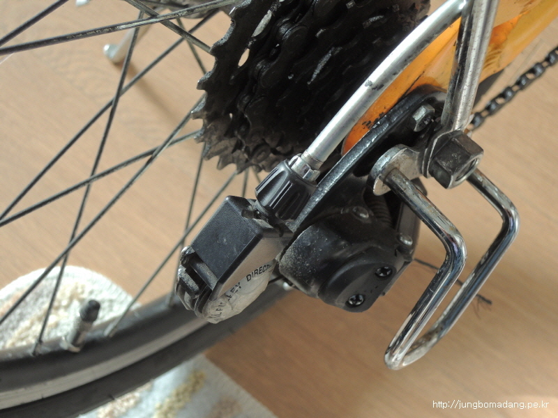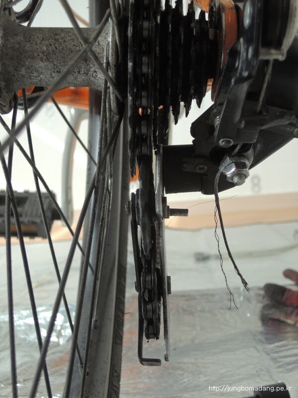 자전기 뒷바퀴의 튜브 펑크를 교체한 뒤 뭐가 잘못되었는 지 기어변속이 제대로 안되는 것입니다.