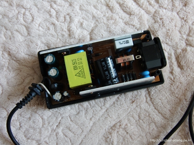 돌려서 납땜 부분을 살펴보니 우측편 220V 접속하는 소켓쪽 납이 떨어져서 덜렁덜렁. 아! 이넘이 원인인 듯?
