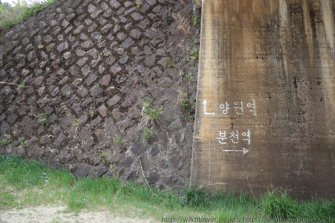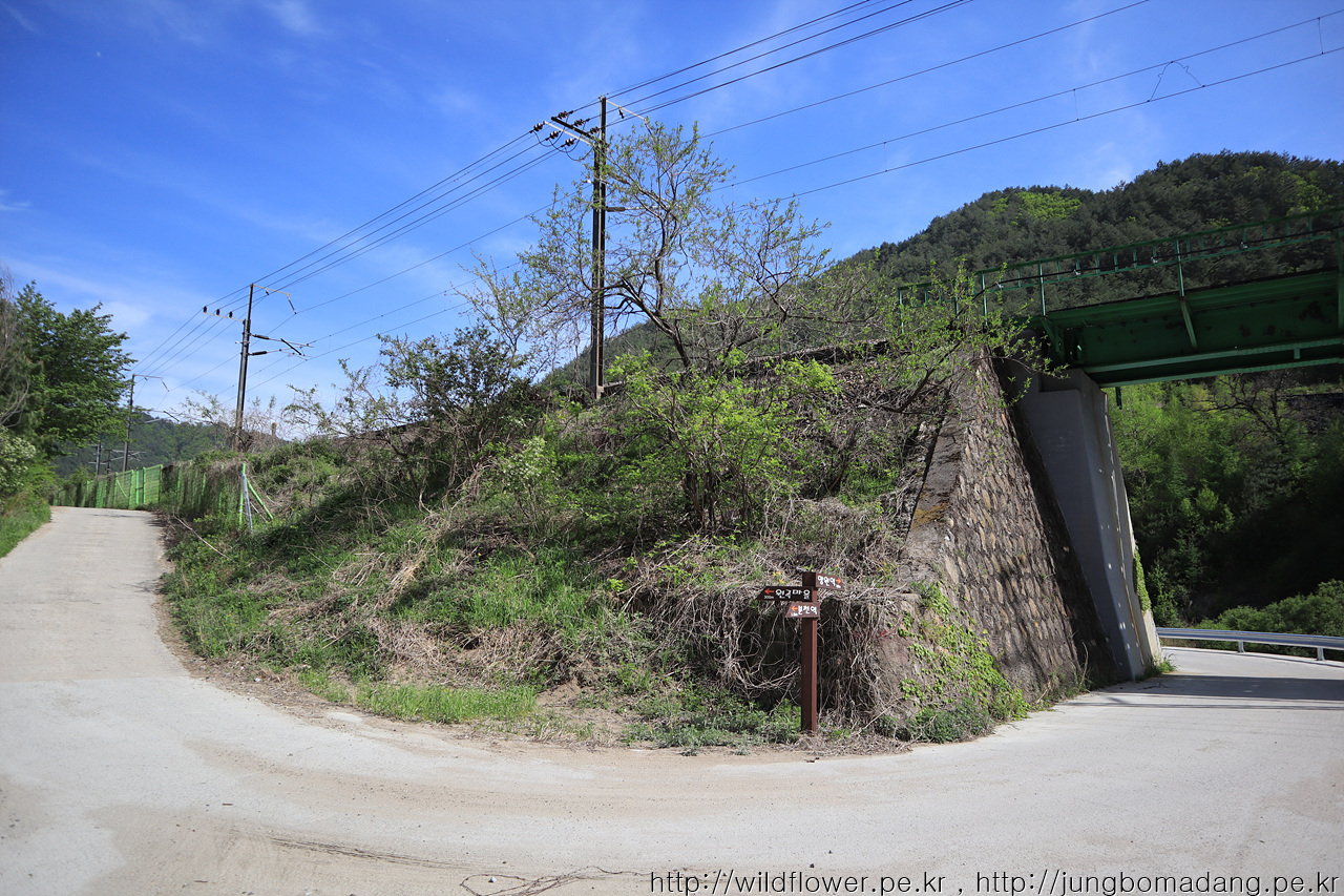 철길 아래로 지나갑니다. 좌측 오름길은 분원마을을 지나고 배바위고개를 넘어서 승부역으로 가는 길입니다.
