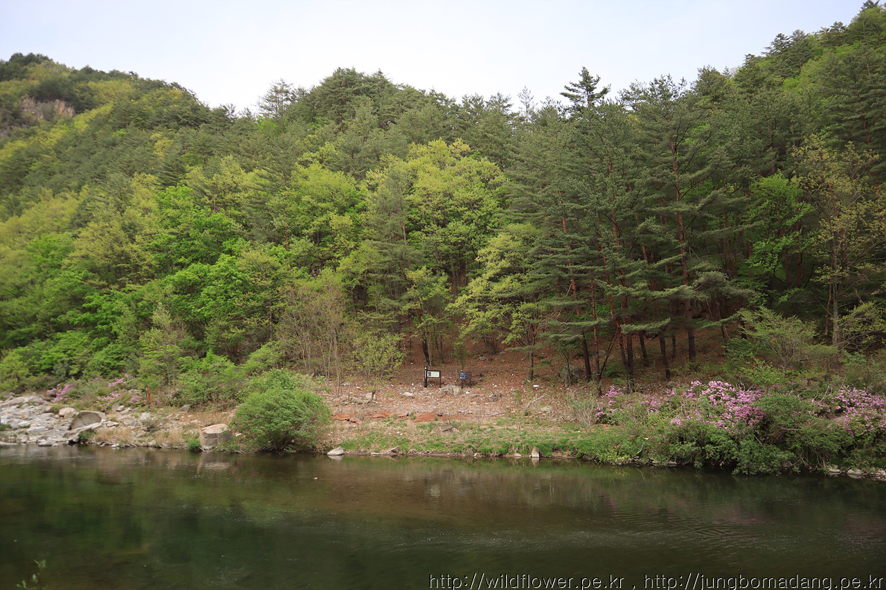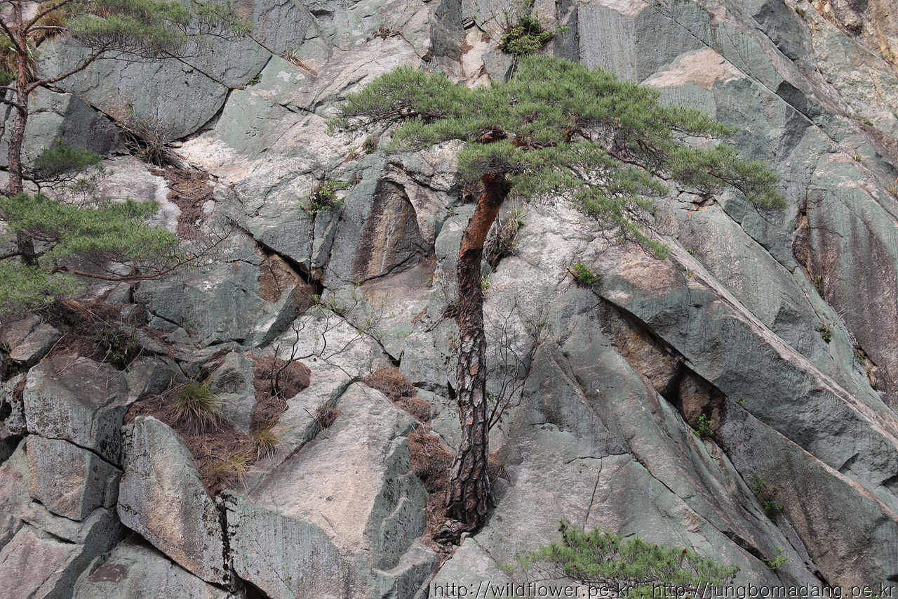 강 건너 벼랑에 소나무가 위태롭지만, 조화로움이 멋집니다.