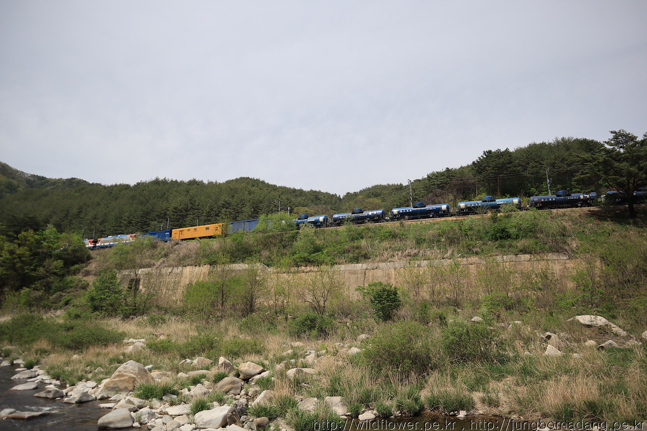 하루 여객 열차 3대 운행하는 데, 화물 열차는 잊을만 하면 지나가네요. 석포제련소 가는 열차인 듯 합니다.