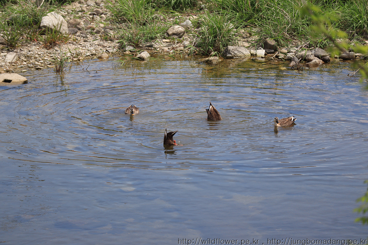 냇가(운곡천)에서 싱크로나이즈를 하고 있는 오리들... 물고기 잡느라고 고개를 물 속에 거꾸로 넣고 오리발을 파닥 파닥하는 게 꽤 귀엽드라구요.