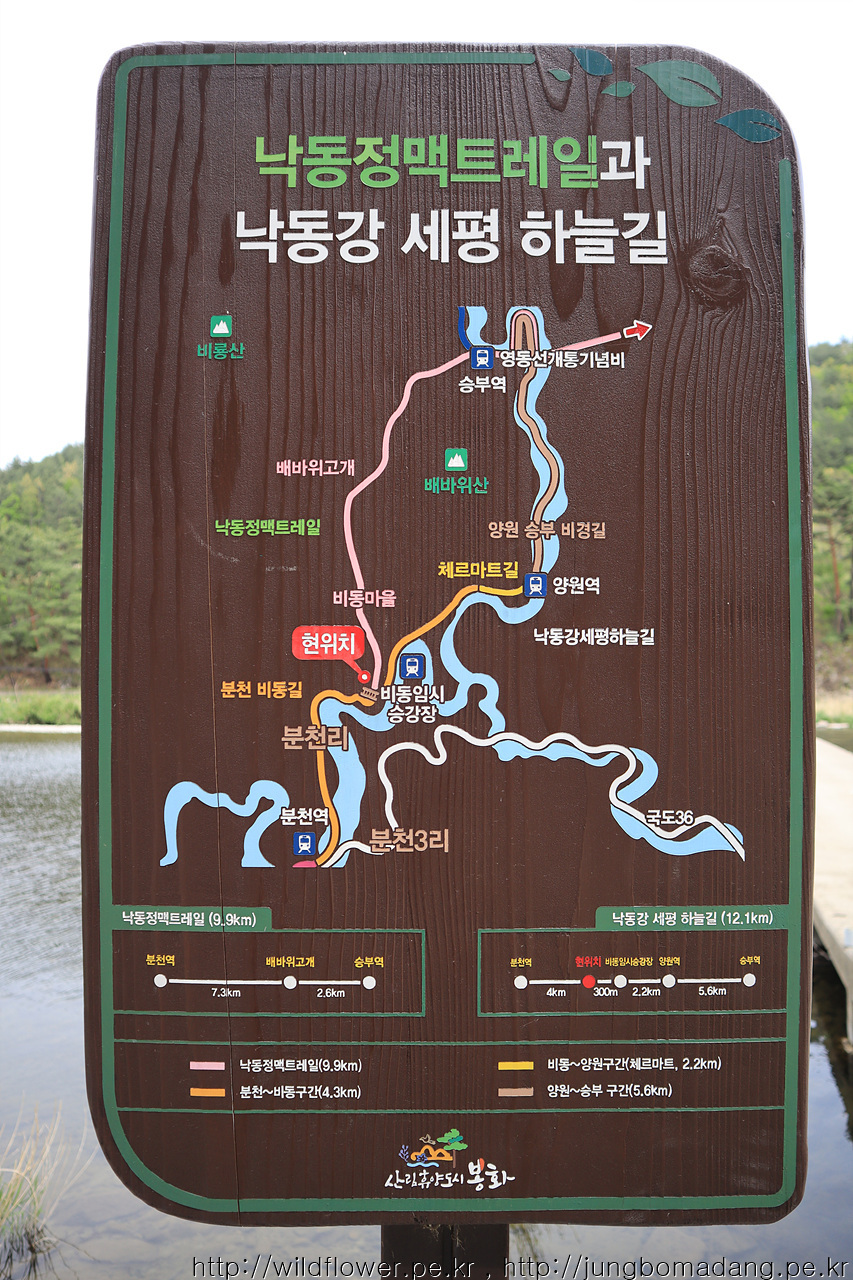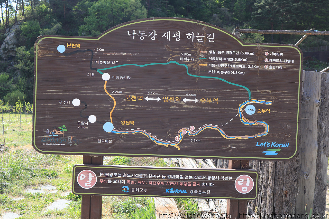 양원역에 도착했습니다. 이제 1코스인 낙동비경길 5.6km를 진행하면 승부역에 도착합니다.