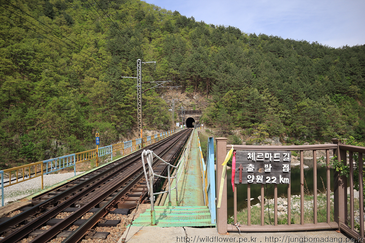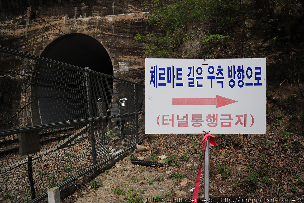 철길 아래로 지나갑니다. 좌측 오름길은 분원마을을 지나고 배바위고개를 넘어서 승부역으로 가는 길입니다.
