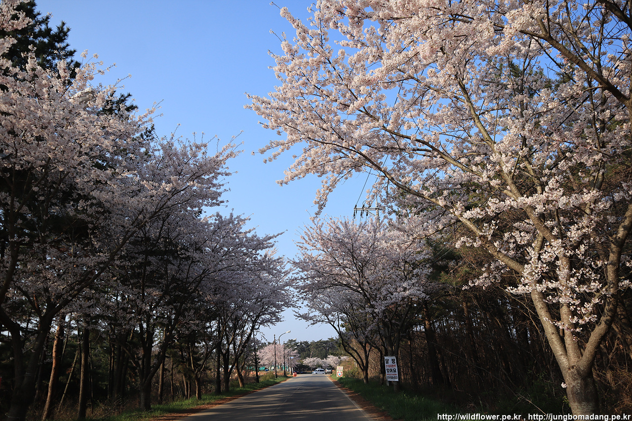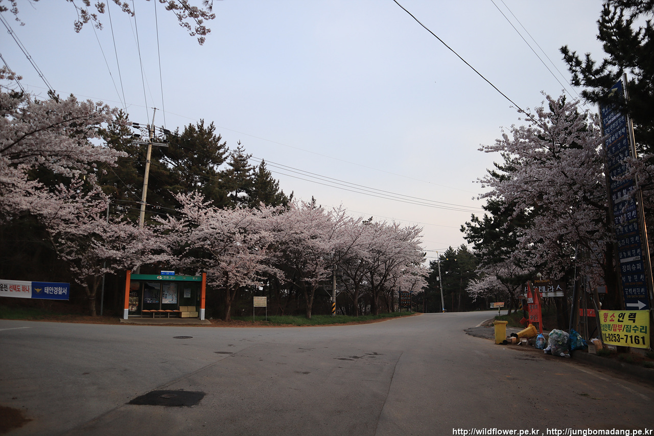 꽃지해변에서 일몰을 보려고 우선 숙소에 짐을 부립니다. 숙소 앞에 벚꽃이 만개해서 내일을 기대하게 하네요.
