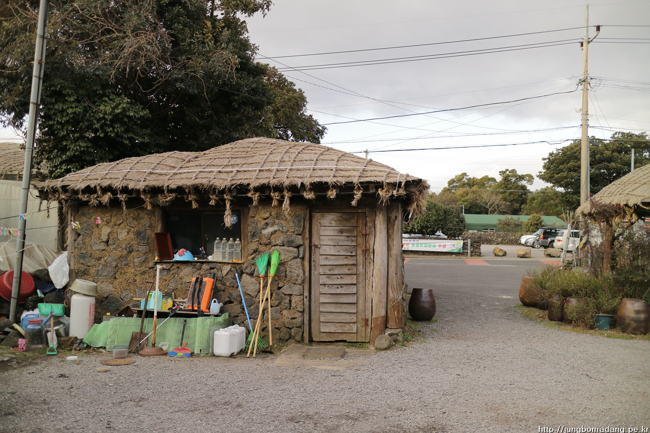 성읍민속마을로 갑니다. 흑돼지도 추운지 저 구석 지푸라기를 부여 잡고 끙끙 댑니다. 어머니는 물론 흑돼지를 처음 보시기에 신기방기해 하시네요 ㅋㅋ