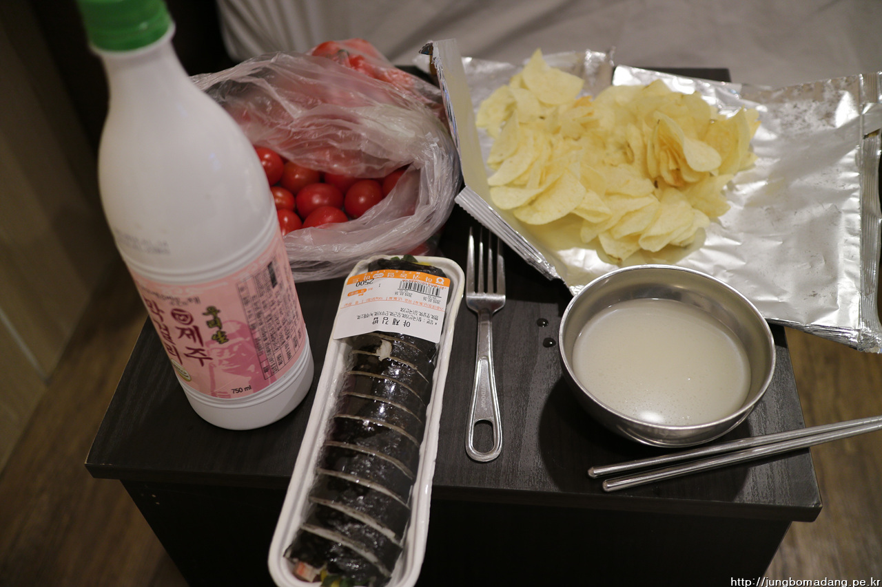 어머니는 술 안드시니 술은 나만 ㅋㅋㅋ 마지막 밤이니 막걸리 2병 외에 맥주도 2캔 챙겼습니다.
