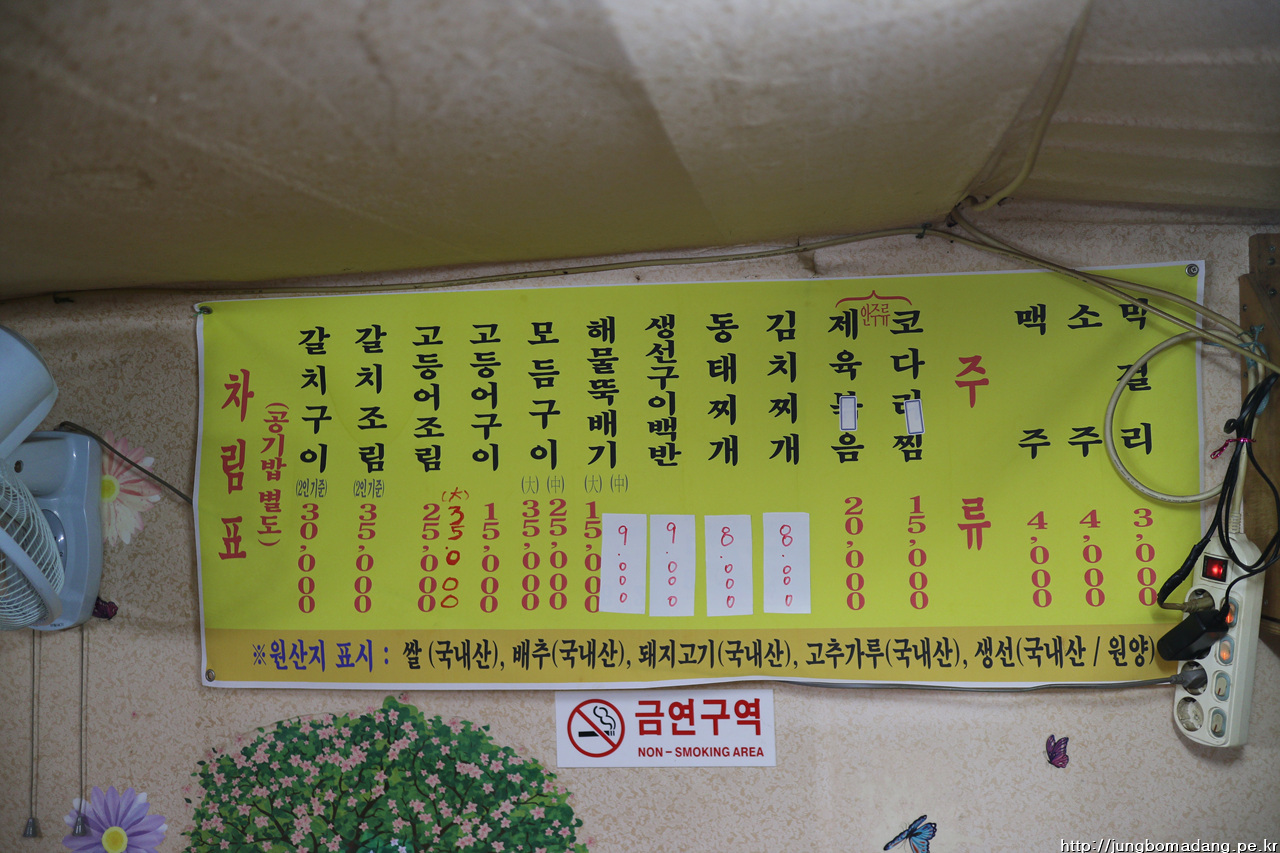 그리곤 점심을 원래 회를 드시게끔 하려 했는 데, 첫날 백반에 고등어 구이를 맛나게 드셔서 고등어 구이를 찾으셔서 여기 들어 옵니다. 고등어구이(15000원), 동태찌게(8000원), 공기밥 추가(1000원)를 합니다.