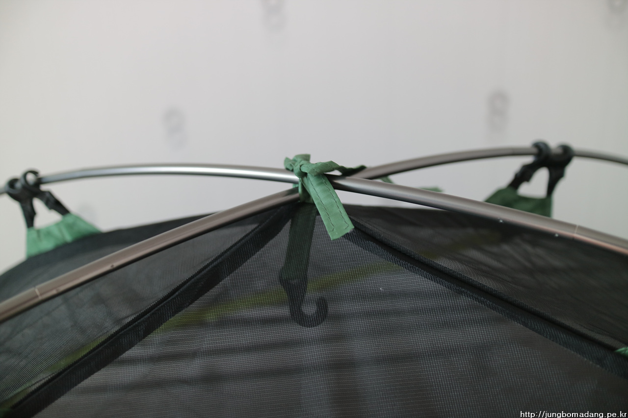 설치된 이너의 모습입니다. X자 형태의 폴대로 고리로 폴대에 거는 구조로 설치하는 데 얼마 안걸립니다.