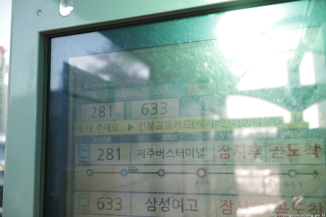 일단 서귀포 동문 로터리에서 내려서 어디 갈까? 고민 고민하다 성판악 가는 버스(281번)를 탔어요.