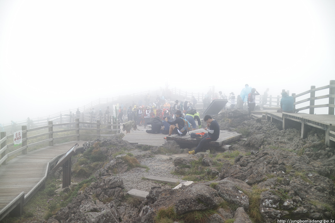 바람 구경 하나 싶은데 아마 운무에 보였다 안보였다하는 백록담에 환호하는 것 같았습니다.