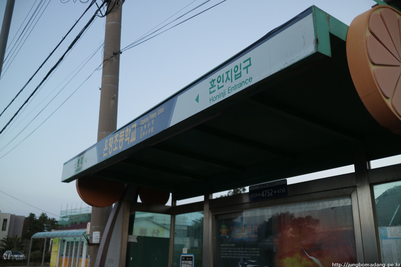 근데 버스가 출발하니 하필이면 퇴근시간 걸리고... 현지인들 바글바글 ㅠㅠ 작은 배낭임에도 이눈치 저눈치 미안함에 혼인지 입구에서 하차합니다. (제주 여행시 시외 버스의 경우 큰배낭 메신 분은 제발 배낭은 짐칸에 또는 안고 타시길 ^^)