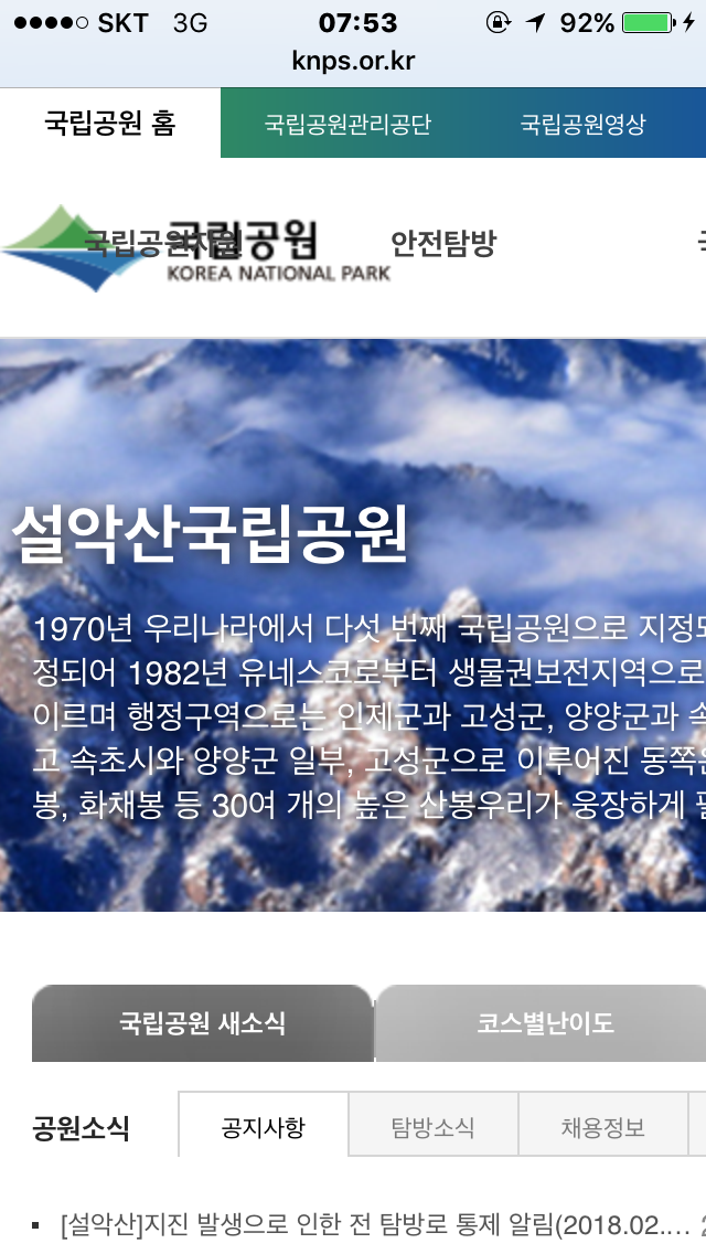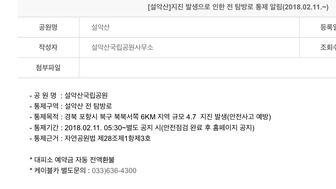 네! 그렇습니다. 포항 지진으로 인한 시설물 점검으로 별도 공지시까지 산행을 할 수 없다는 날벼락같은 이야기....