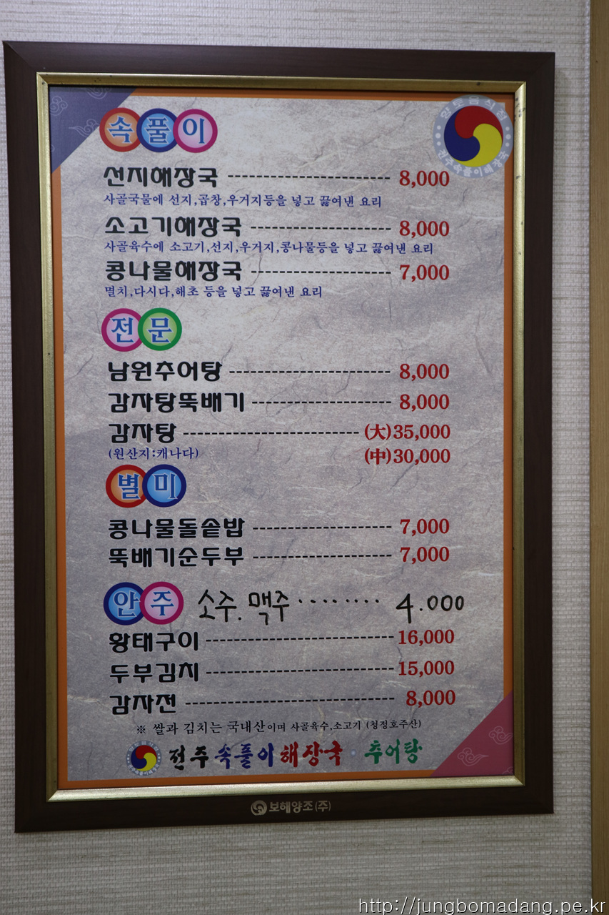 메뉴판 살짝 봐주고, 남원추어탕 주문!