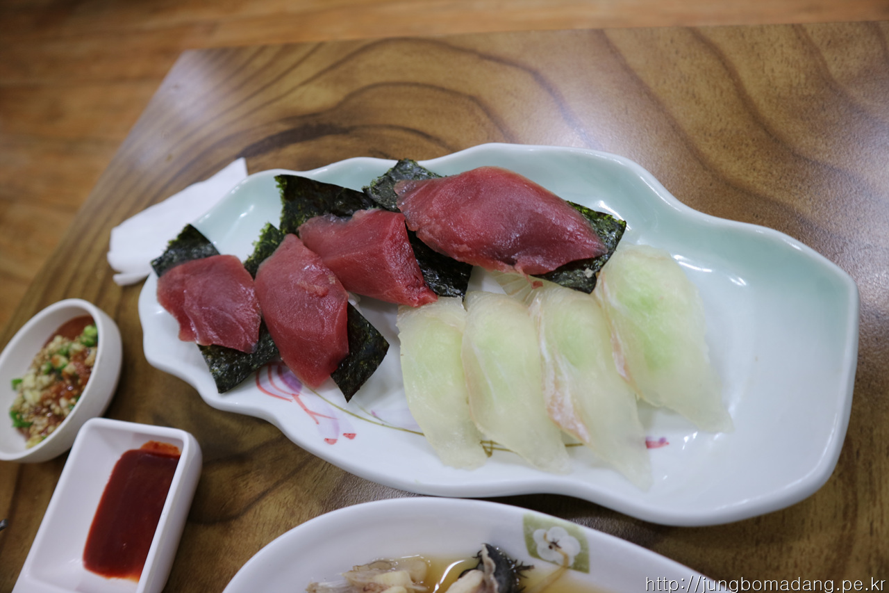 초밥 위에 회도 장난 아닙니다.