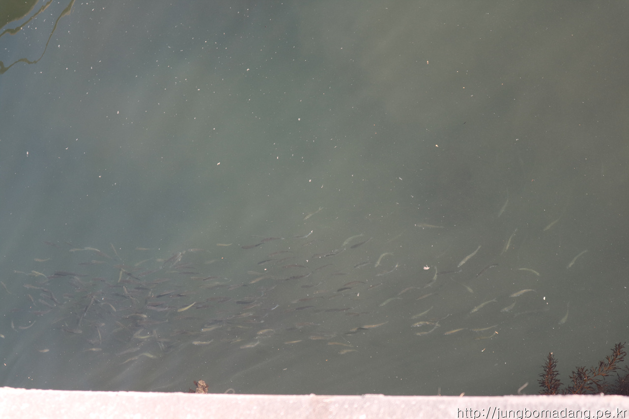 항구 근처인데 작은 물고기가 바글 바글