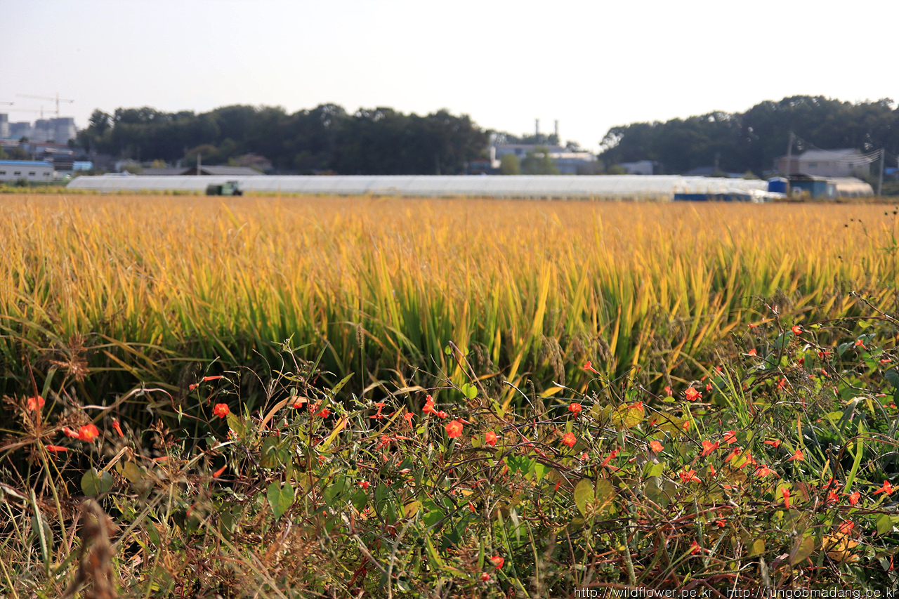 추수 대기중인 논두렁에 핀 둥근잎유홍초