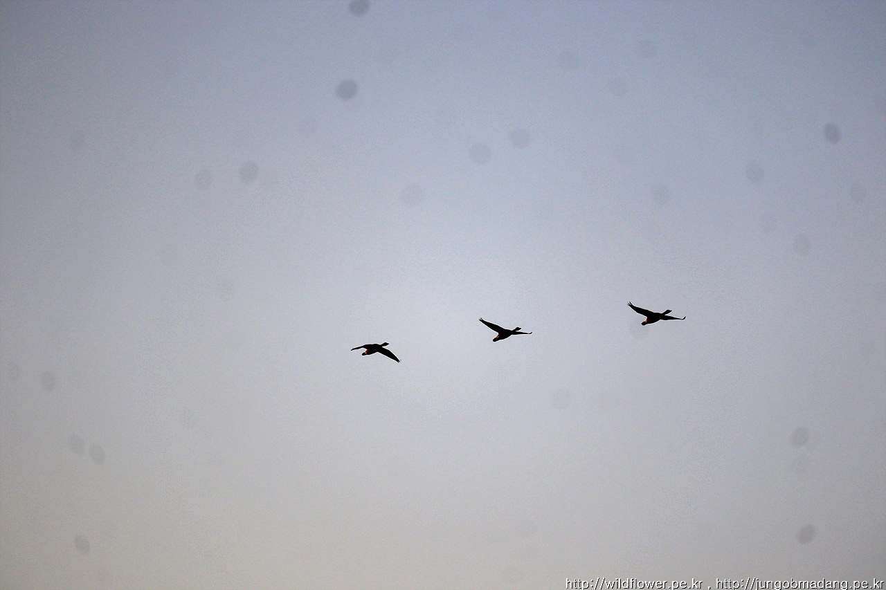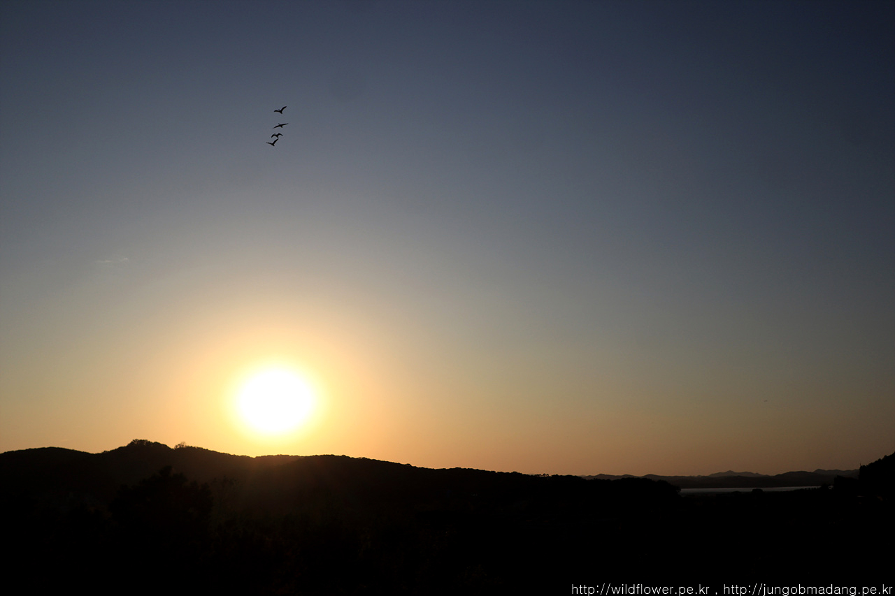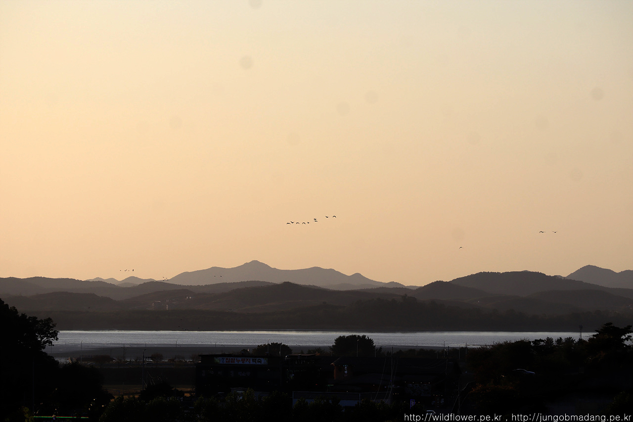 해질녁 하늘 위로는 겨울을 준비하며 이동하는 철새(오리 종류)들이 소리를 내며 이동 중입니다.