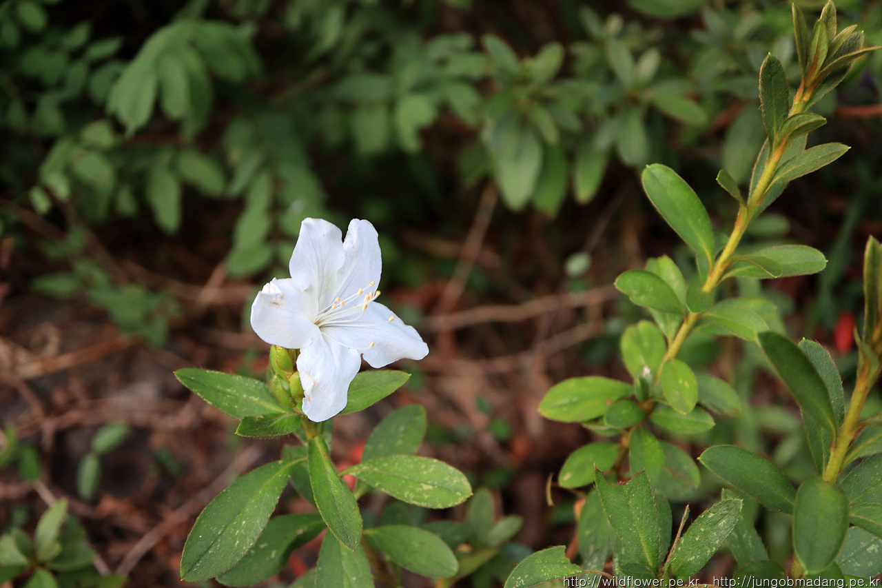 길거에에 핀 산철쭉 한송이가 지금이 봄인 줄 알았다가 당항하는 듯 합니다.