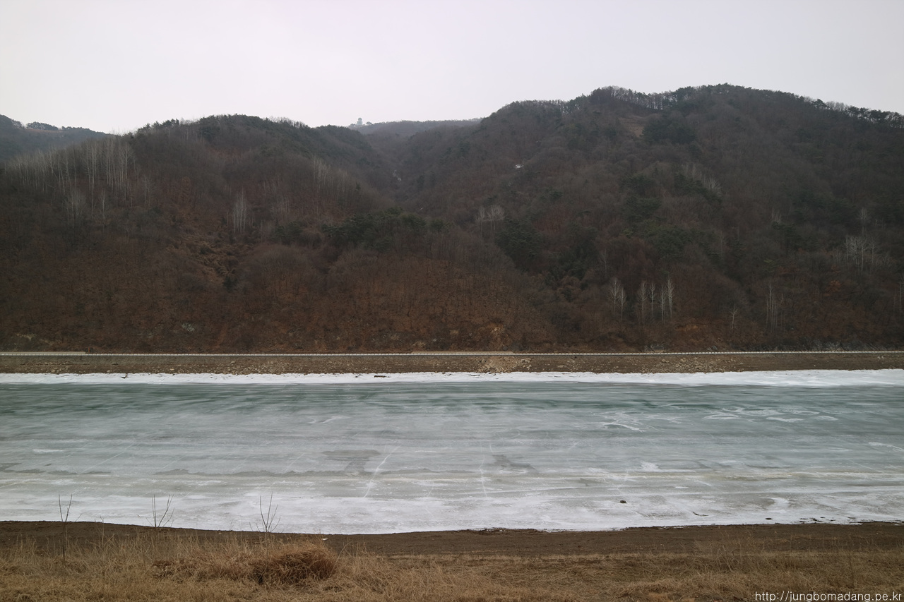 요래 자전거 도로도 구간별로 얼어 있구요. 미끄럽진 않으니 조심해서 진행하면 됩니다.