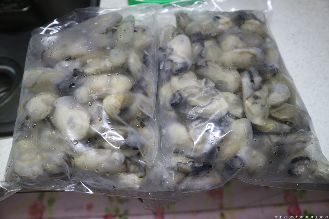 집으로 돌아오니 어제 주문한 통영 냉동굴 2Kg가 배송되어 있네요.