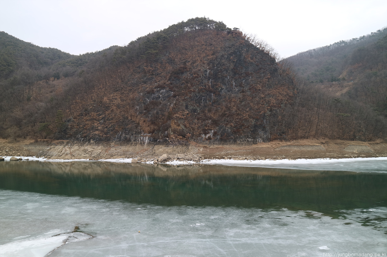 바위위로 얼었던 얼음이 쪼깨져서 신기합니다.