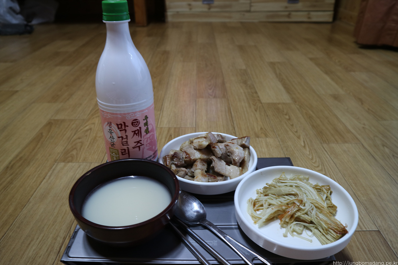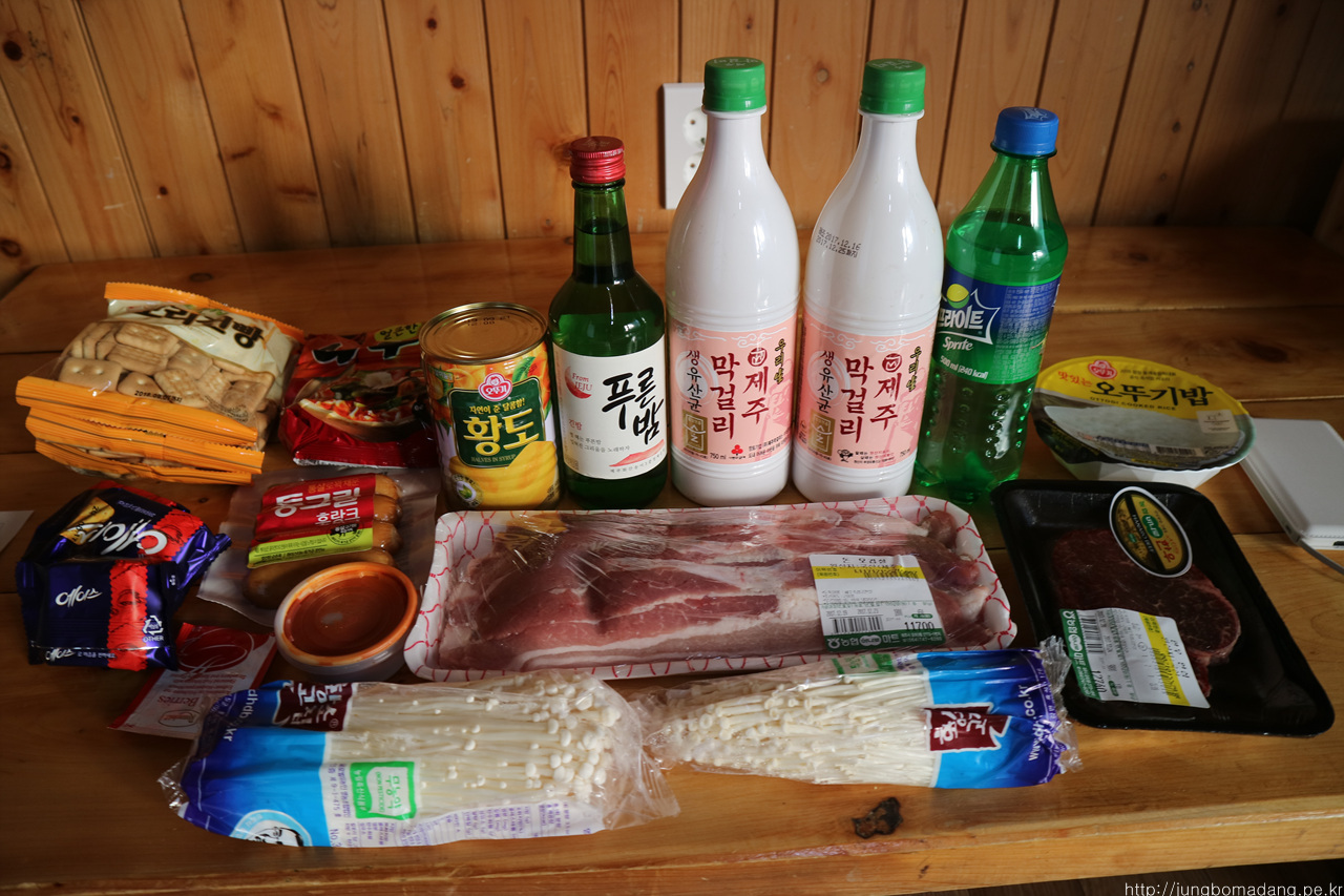 두둥~ 생존한 맥주 한캔도 보이네요. 막걸리는 2병 샀구요.