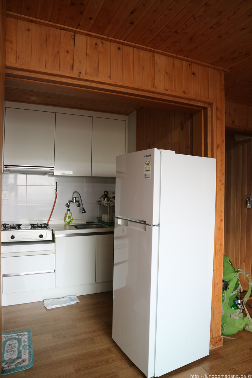 냉장고도 있고, 전자렌지도 있고, 취사도 되고, 뜨건물도 빵빵
