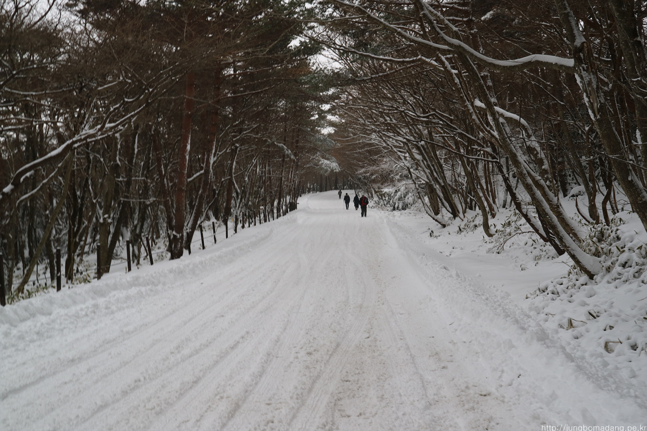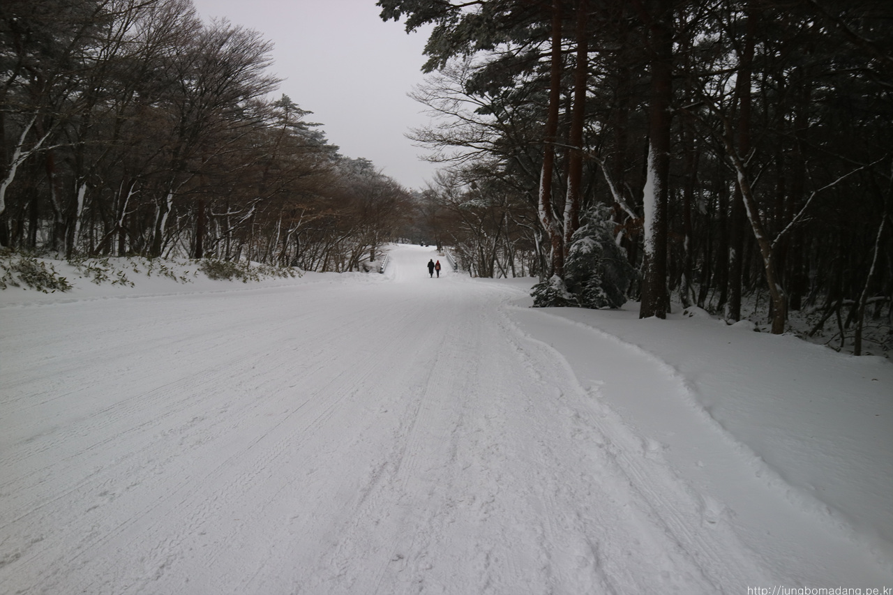 근데 영실쪽은 요래 도로가 재설이 안되는 거였습니다. 전 아이젠을 풀렀는 데 말이죠. 귀찮아서 그냥 내려가기로 하는 데, 30분을 내려가야 합니다.