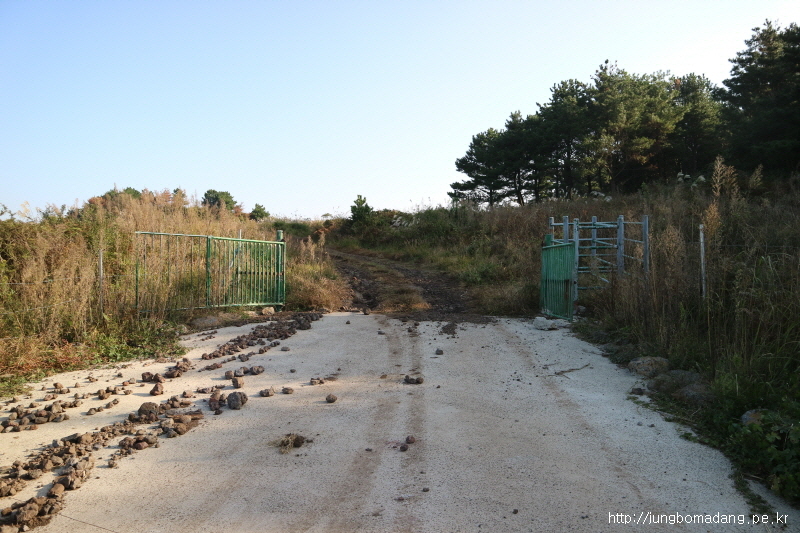 아! 근데... 여기 오름은 똥이~ 똥이~ 무지 무지 많아요. 말똥천국! 그도 그럴것이 바로 아래 승마장이 있어 여기 방목을 하나봐요.