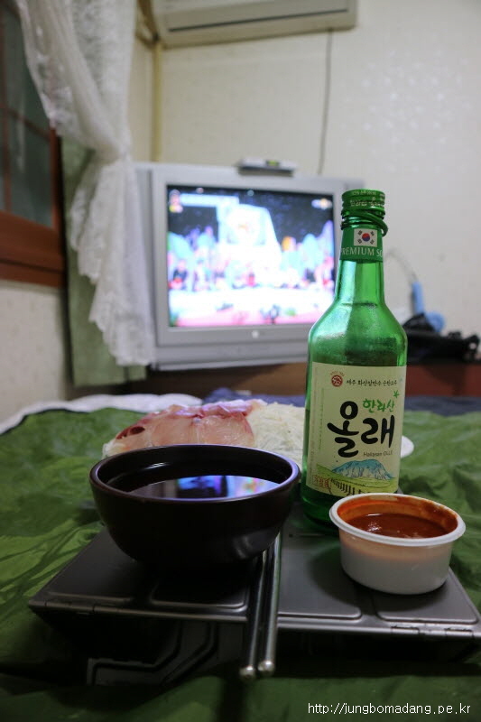 편의점서 막걸리 한병, 소주 한병 사서 모텔에 갔다 놓고,