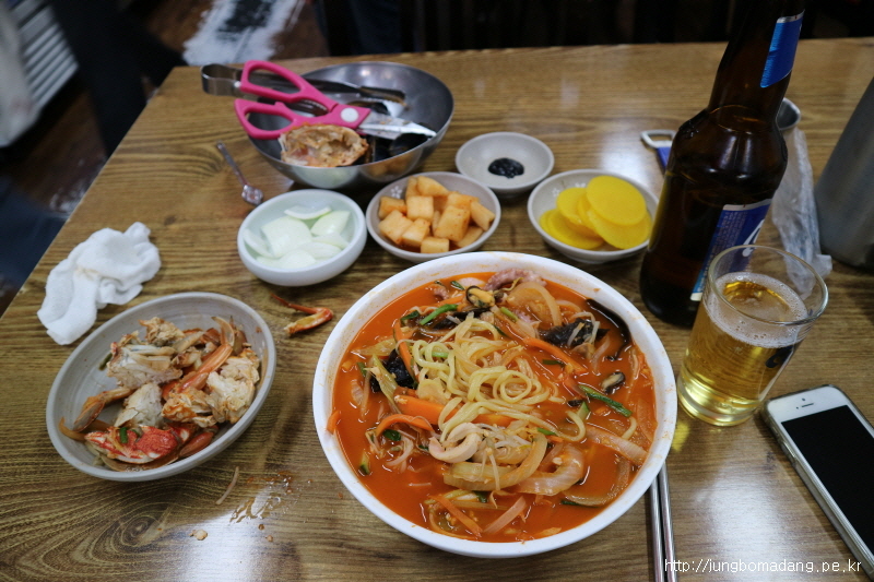 요래 푸짐한 해물에 맥주 한병 더하고,