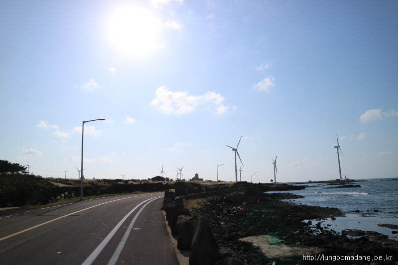 지금 한림에서 신창 풍차 해안로를 향히 가고 있지요.