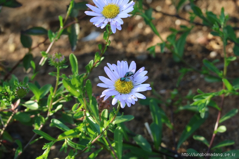 쑥부쟁이에 파리가 왜 이러는 걸까요? 한두마리가 아니라 궁금했네요. 지들이 벌인가 착각을?