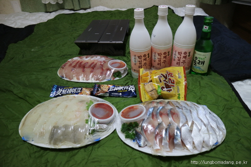 그 위에 방수포 깔고, 오늘의 만찬을...