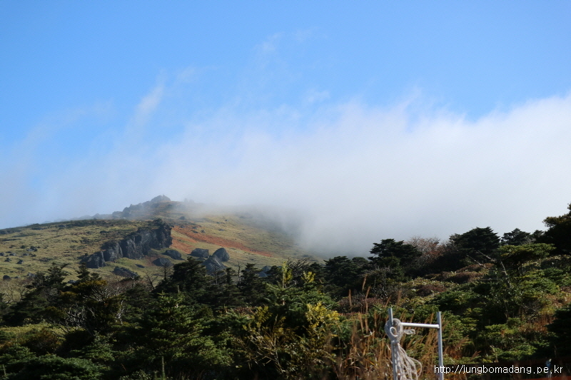 09:30 영실쪽으로 하산을 시작합니다. 남벽은 구름에 가리워져 안보이구요.