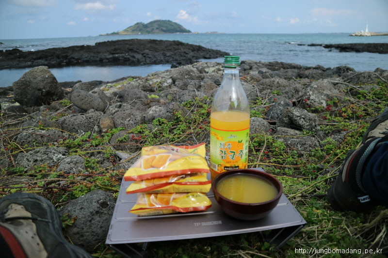 제주막걸리 1병(1400원,제주산 쌀), 제주감귤주귤로만 1병, 보리건빵3봉지(1100원), 커피캔 1개(980원), 한라우유 1개(700원), 황도(1600원), 핫브레이크 2개(1600원) 이거 저거 사다보니 만원이 훌떡 넘네요 ㅋㅋㅋ