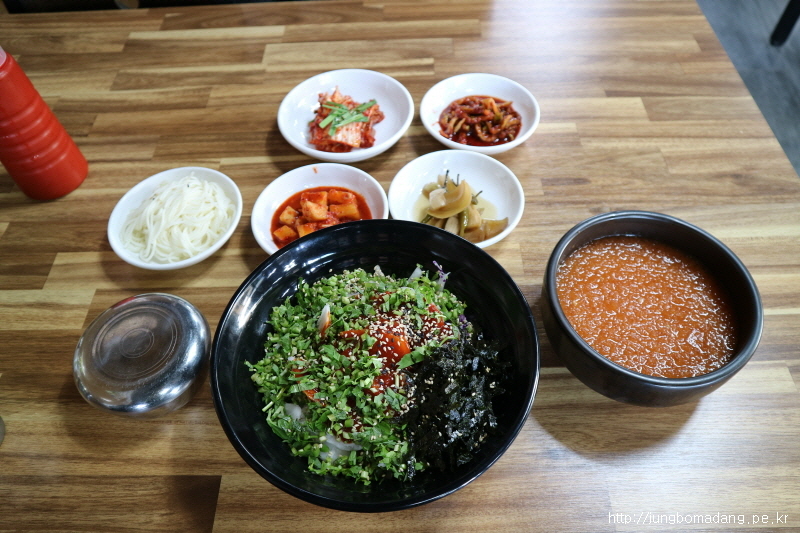 두둥~ 물회는 맛난데, 반찬이 보다시피 김치, 장아찌류라 먹다 남겼네요. 남기는 거 진짜 싫은 데..