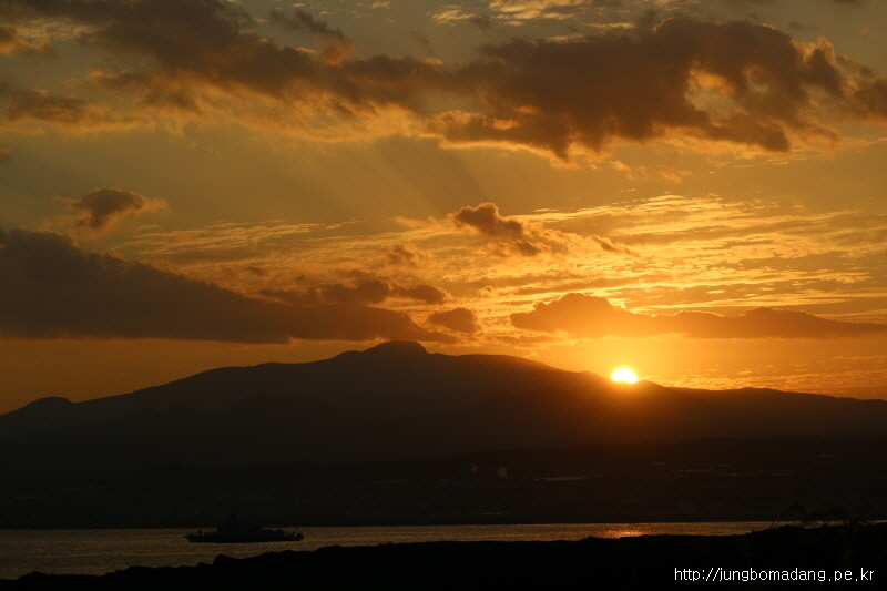 한라산 뒤로 새초롬하게 일출도 맞이 합니다. 첫배가 9시 16분이라 여유가 있네요. 슬슬 정리를...