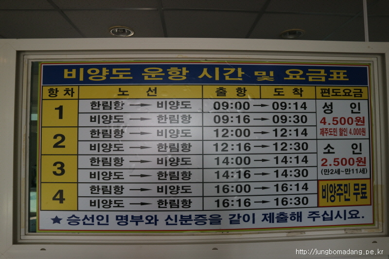 16시 배는 손님이 한산합니다. 9시 첫배가 손님 많죠. 비양도까진 10분 소요됩니다. 나오는 배는 들어가는 배 + 16분 후