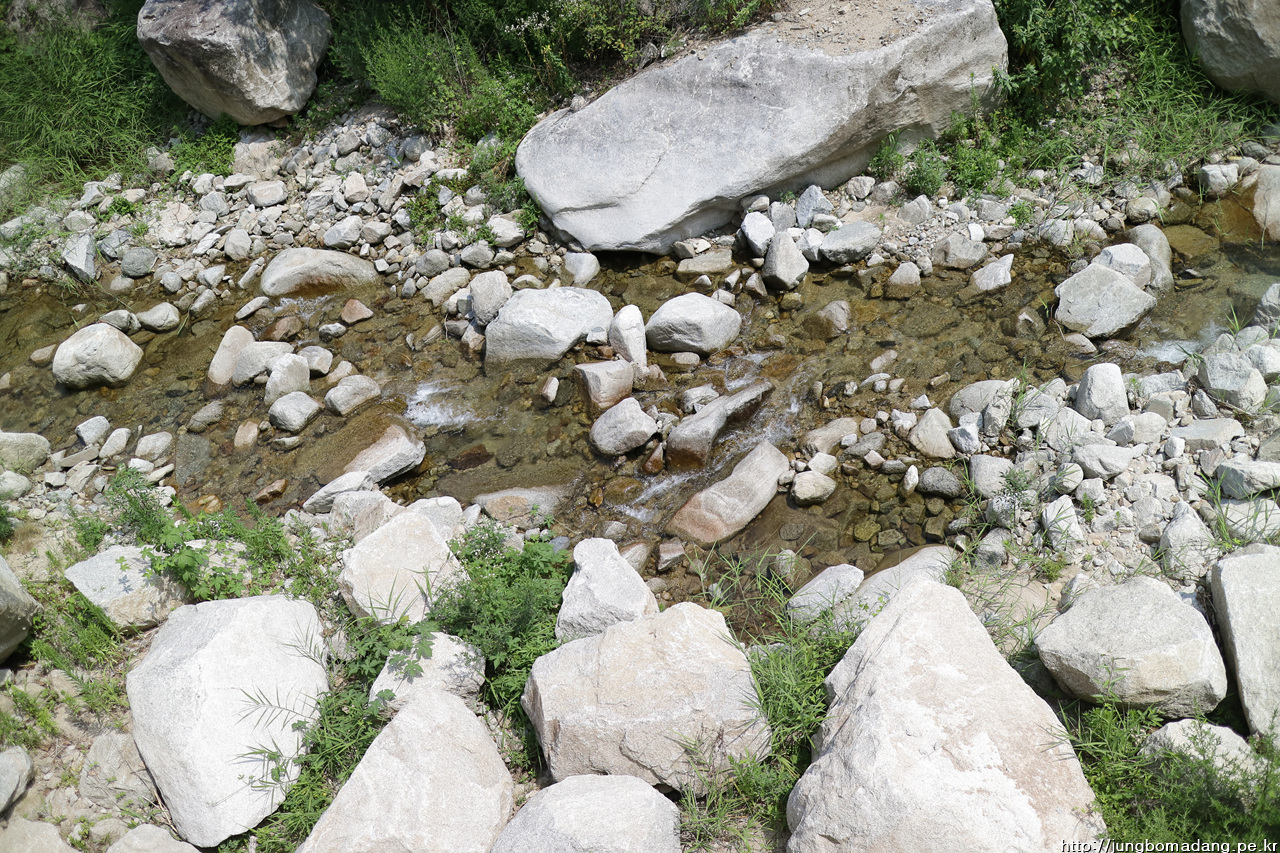 계곡물인데 속에 모가 그로 비쳐서 물이 없는 거 같이 보이기도 네요?