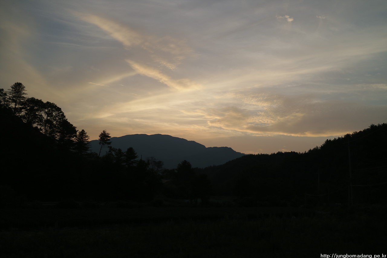 원래 계획은 계곡을 빠져 나가서 날머리에 있는 하나로마트에서 쇼핑을 하고 근처 정자에서 일박하는 것인데, 지금 시간상 하나로마트가 문 닫는 저녁 8시까지 도착이 무리인 듯 하여 과감히 막골리를 포기하고 ㅠㅠ