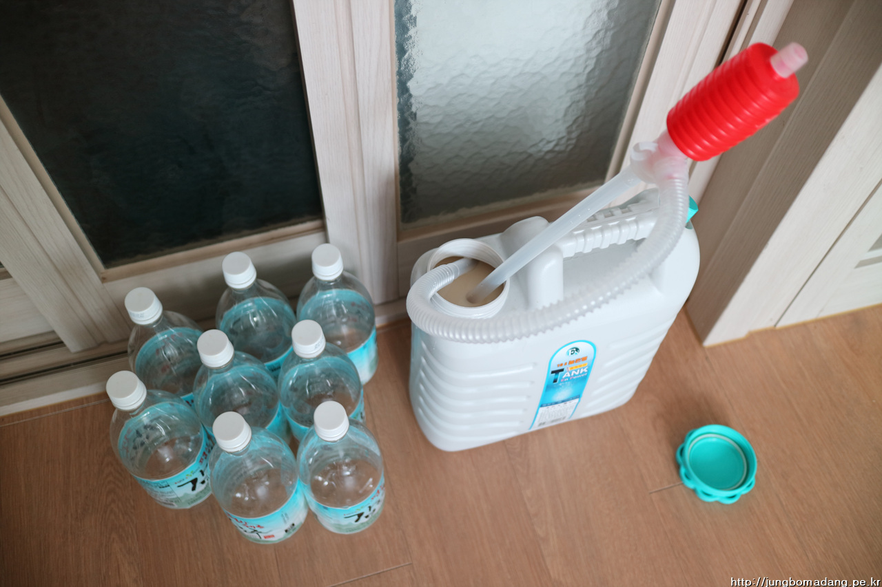 냉장보관을 위한 처절한 사투. 전에 비워둔 감로주 빈병이 고생하기로 합니다. 빈병은 1.2L짜리 입니다.