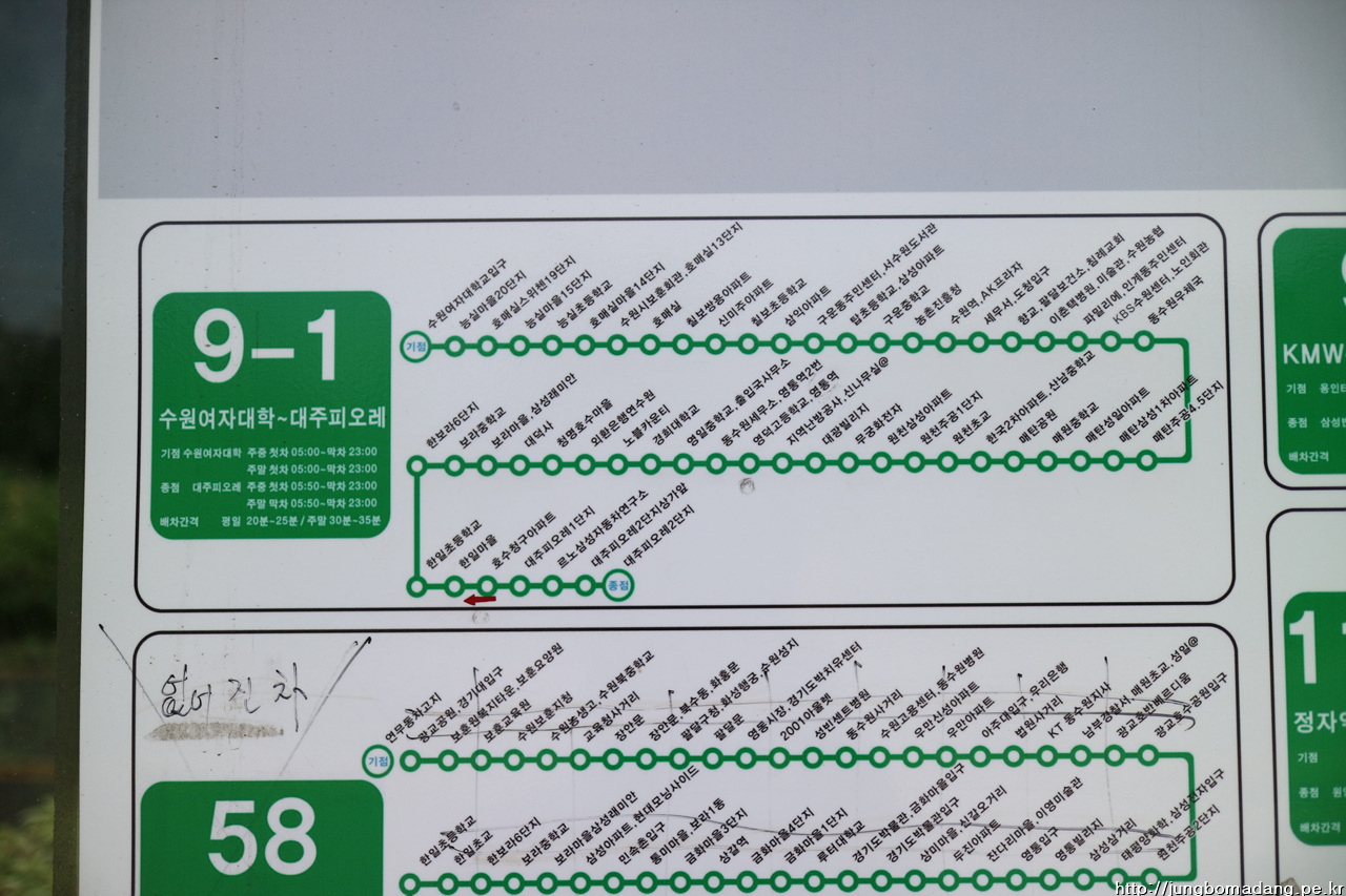 집으로 가기 위해 정류장에서 9-1 버스를 기다립니다. 일반적으로는 상갈역 가는 버스 타시면 됩니다(대중고통 기준).