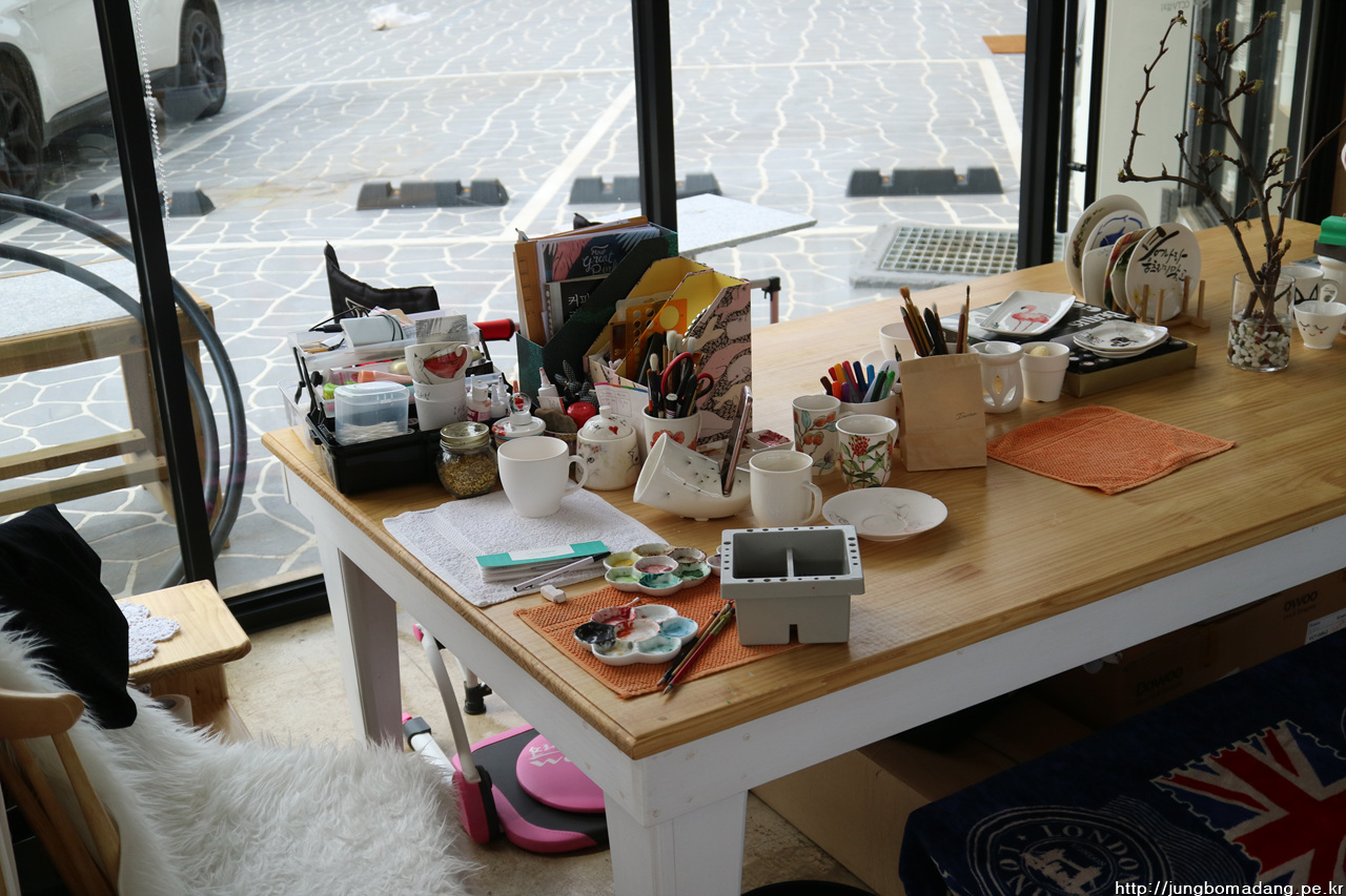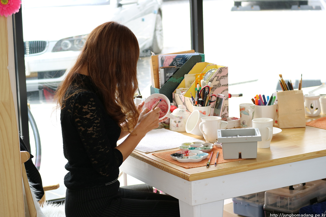 본인 동의 하에 그릇에 그림 작업하시는 모습 한 컷 담으면서, 저희는 물러 갑니다...