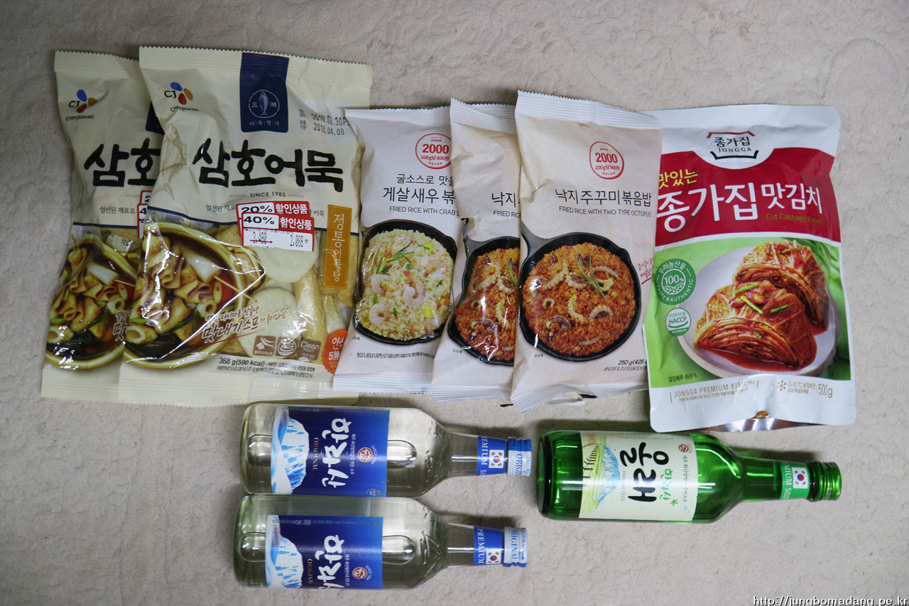 성인음료는 간단히(간단히????) 이정도 준비했습니다. 3명이서 거의 해결해야 합니다. 맥주 -> 막걸리 -> 소주순... 그리고 깜짝 게스트도 있구요.